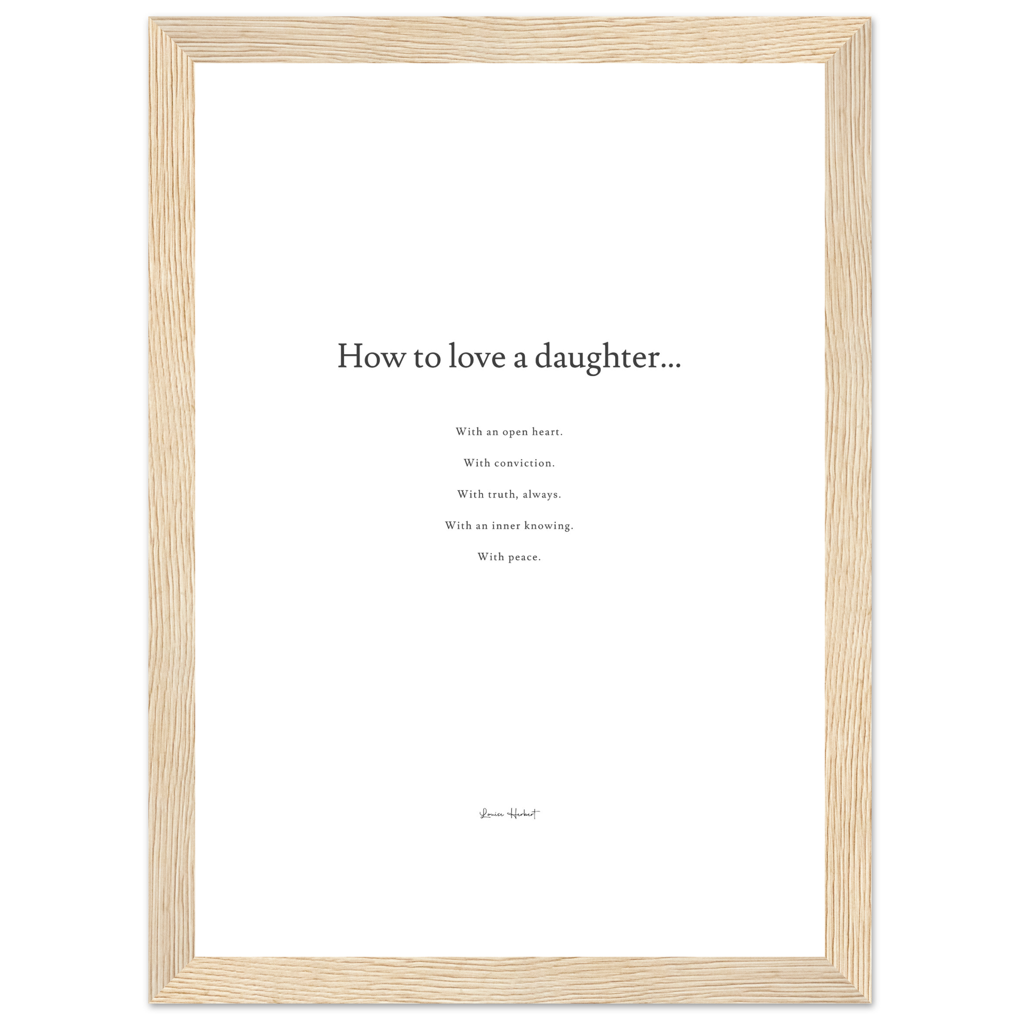This special edition framed print of Louise's poem, How to love a daughter, arrives ready-to-hang in its solid wood frame.