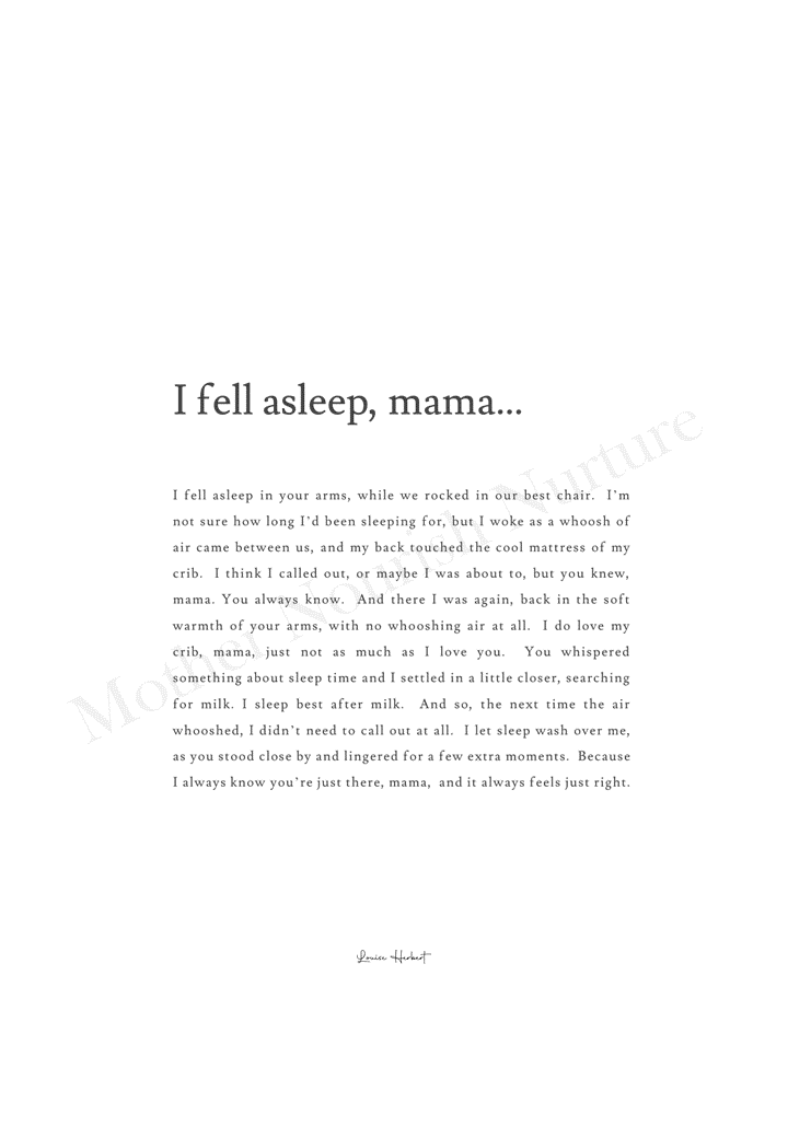 This digital version of Louise's viral poem, I Fell Asleep, Mama, is provided as a high quality downloadable file.
