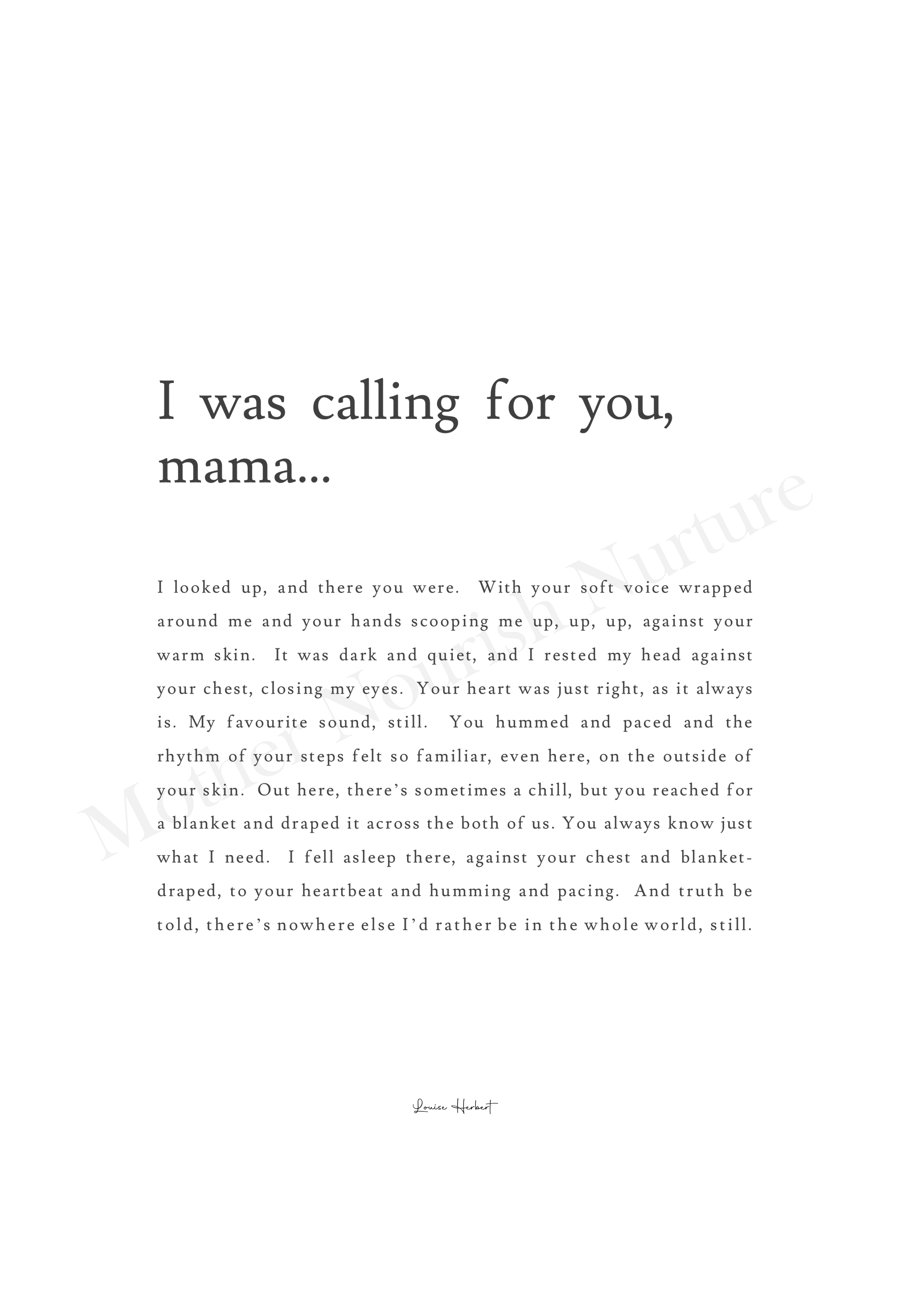 This special edition digital version of Louise's poem, I Was Calling For You, Mama, is provided as a high quality downloadable file.
