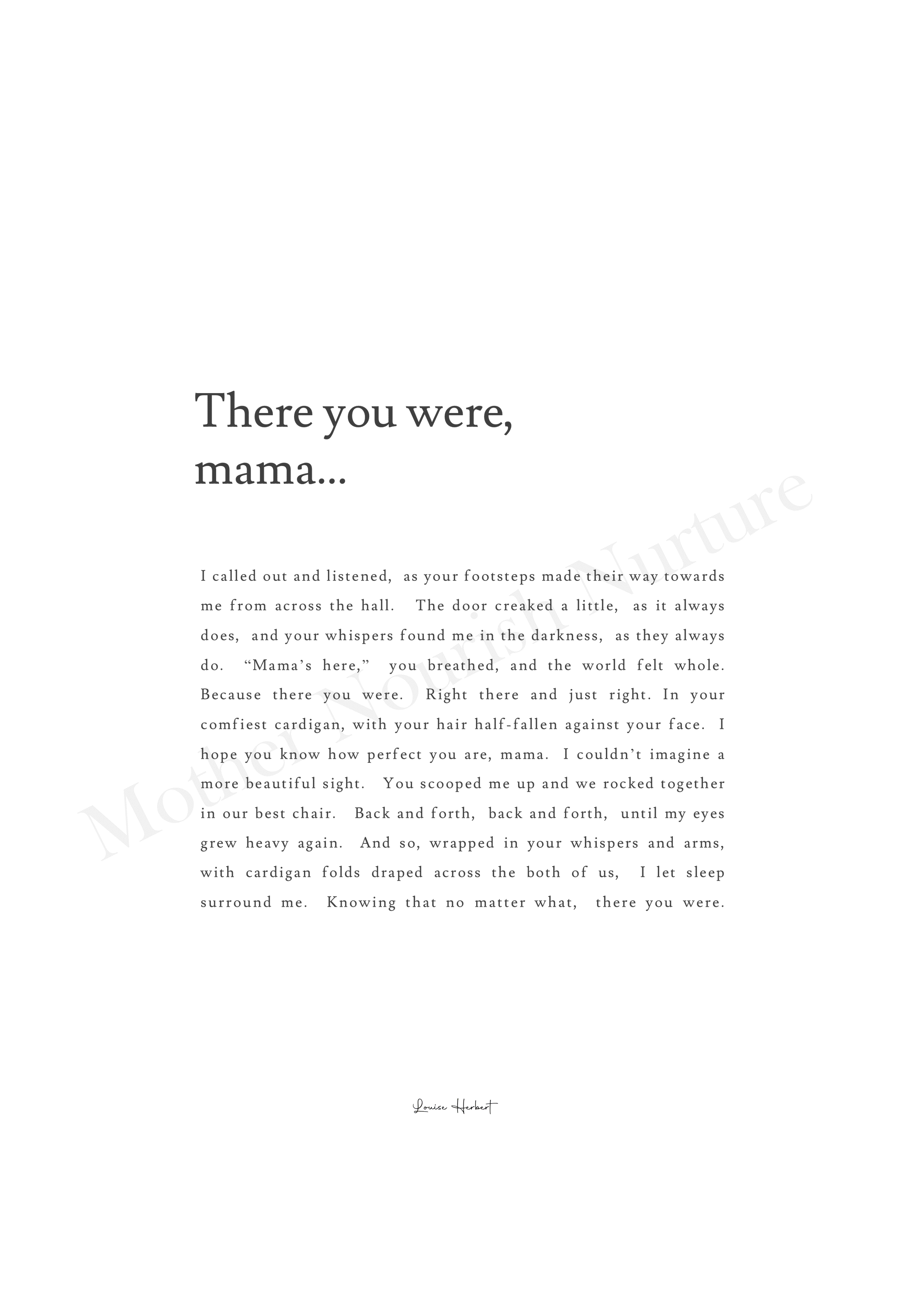 This digital version of Louise's poem, There You Were, Mama, is provided as a high quality downloadable file.