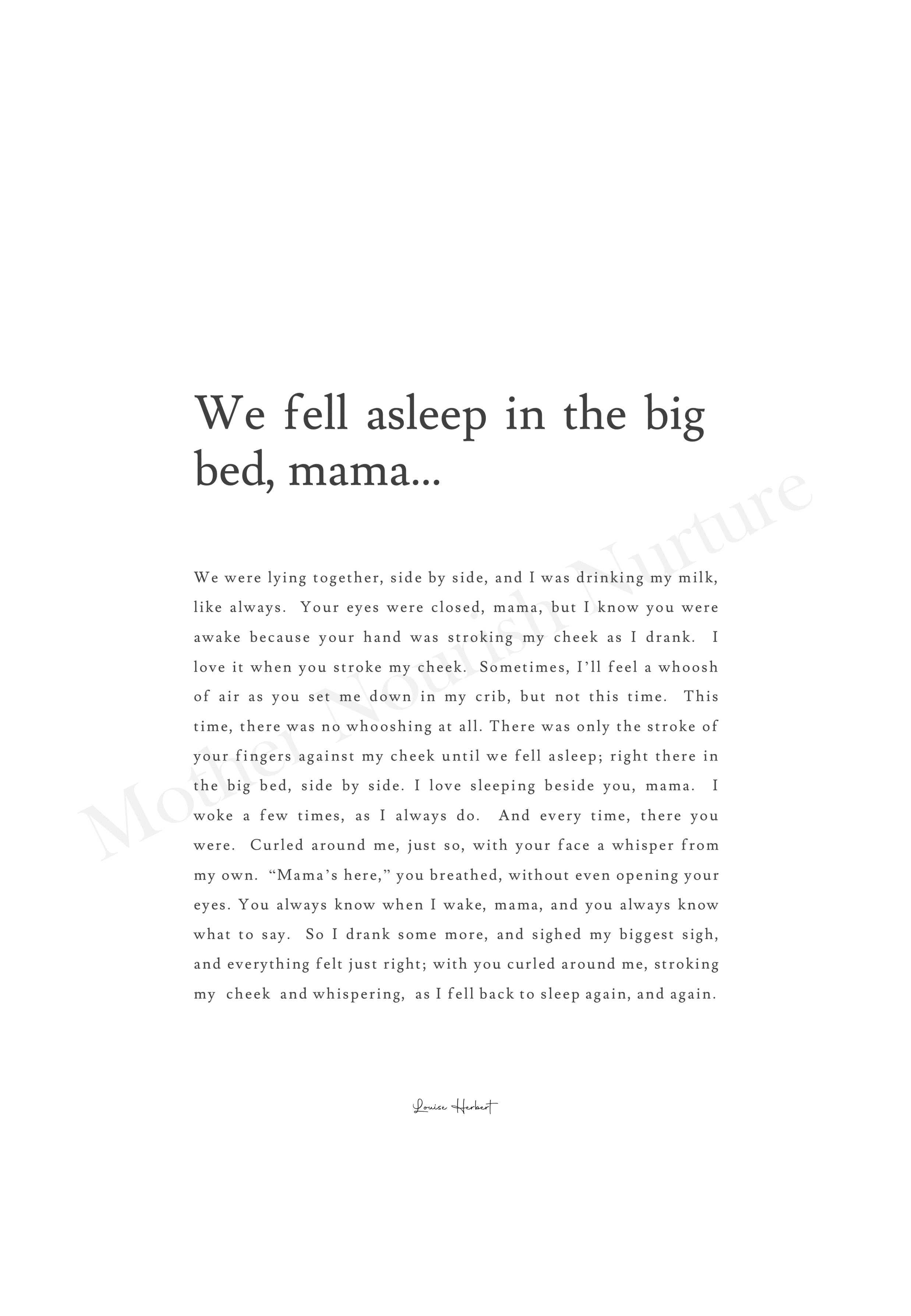 This digital version of the poem, We Fell Asleep In The Big Bed, Mama, is provided as a high quality downloadable file.